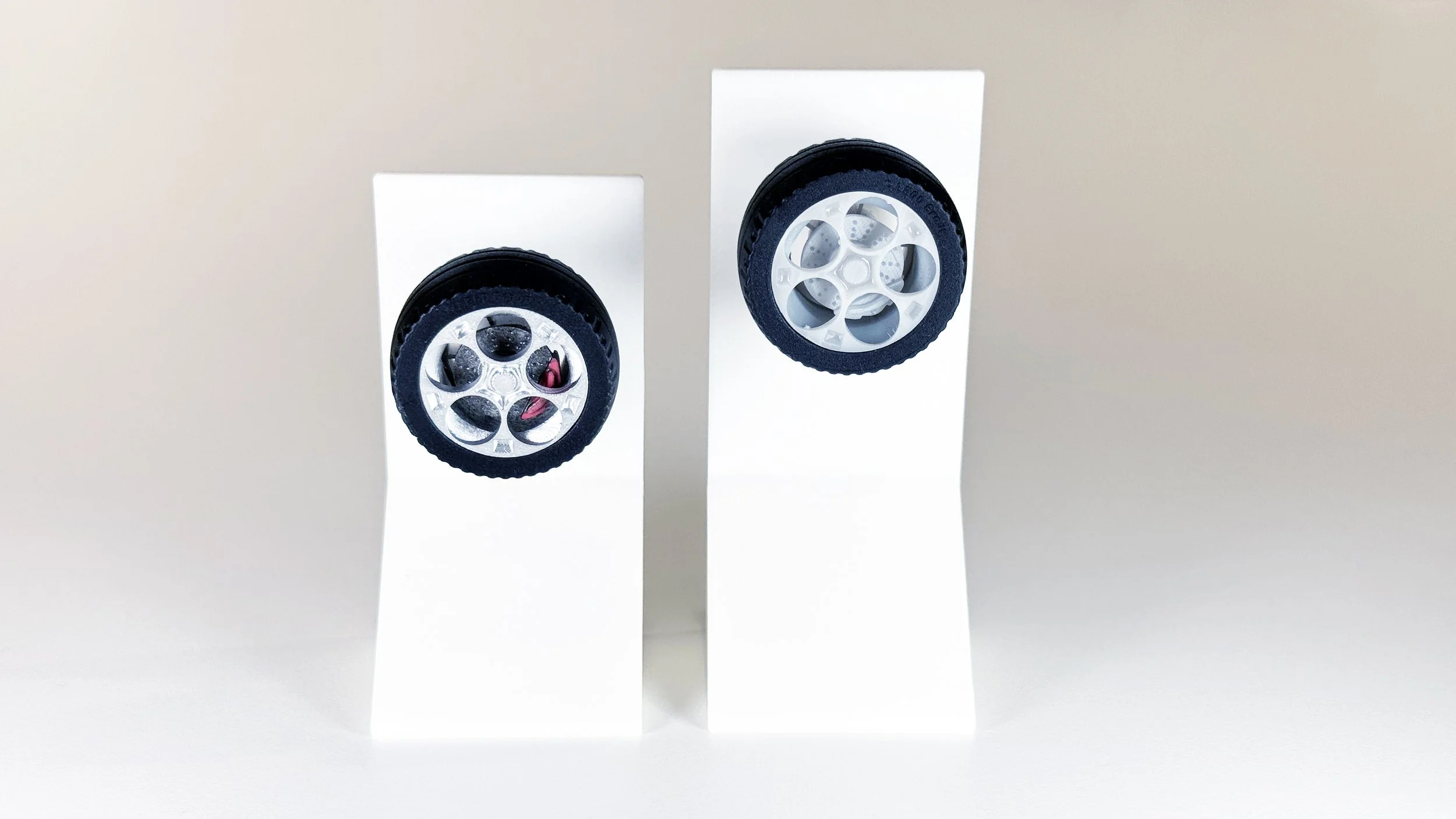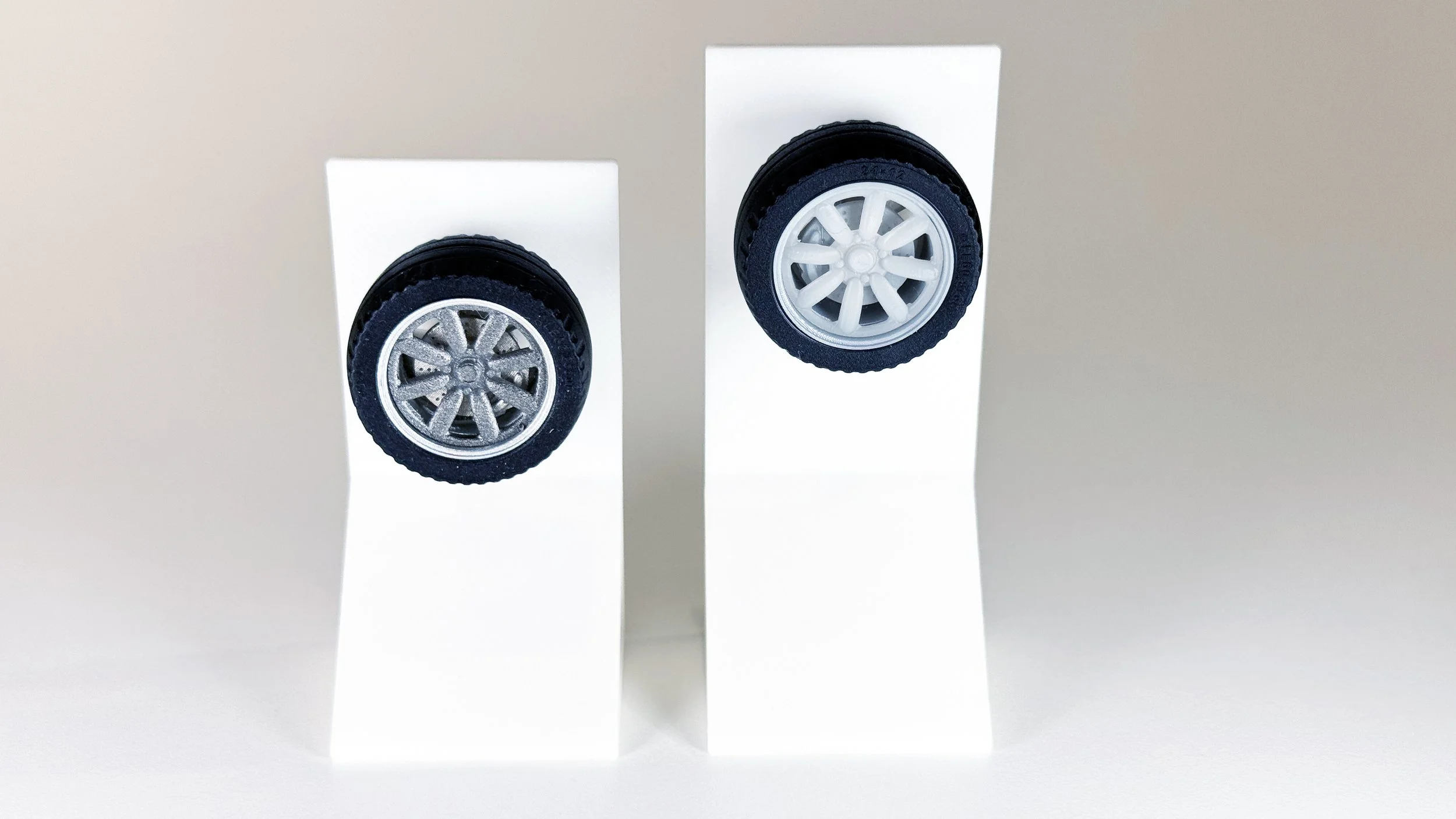 You can paint the parts separately so you can have the rims to your liking. They consist of an outer rim, brake disc with brake shoes and inner part of the rim
